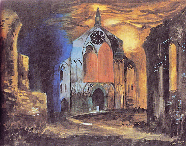 John Piper , one of a key group of British landscape artists active between the wars, had a consistent ability to evoke a sense of place in terms of a blend of its physical characteristics and spiritual atmosphere. It has been said that his work represents the true vision of England in the mid twentieth century. His style was very much his own and in this respect he was probably the nearest independent successor to Turner of the previous century. Within his lengthy career, he was involved with print-making, stained glass, illustration, theatre design - and fireworks. He with his art critic wife, Myfanwy, created a huge network of friendships and collaborations, with Benjamin Britten, Kenneth Clark, John Betjeman, Osbert Lancaster, Ben Nicholson, Barbara Hepworth, Henry Moore, and the Sitwell family of Renishaw Hall. Together the couple demonstrate the key roles they played in defining 'Englishness' in the mid-20th century - not least through the iconic series of topographical books, the Shell Guides to England's counties. John Betjeman, a great friend to John Piper and the co-creator of the Shell Guides once told the artist "You have saved much of England by your pictures of architecture and landscapes. What is more you have increased our vision. Things look like pictures by Mr Piper and look better for having been seen by him".