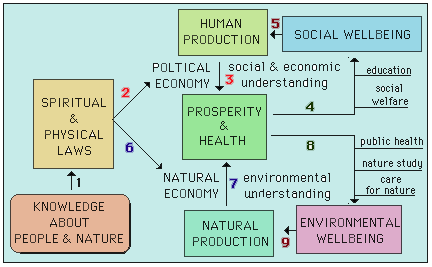 Physical laws are applied to manage natural production (the subject of natural economy) i.e. natural economy defines the way people process physical and biological materials to meet their needs and wants through environmental understanding.