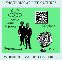 Examples may be gathered through local appraisals of the influential role played by the visual arts and architecture in the formation and maintenance of religious and spiritual values in all societies since prehistoric times. However, there is no generally accepted educational framework to use neighbourhood notions about nature to link communities and environment to a larger scheme of spiritual values. In particular, classroom examples are needed which highlight spiritual reasons for promoting a particular course of local development.